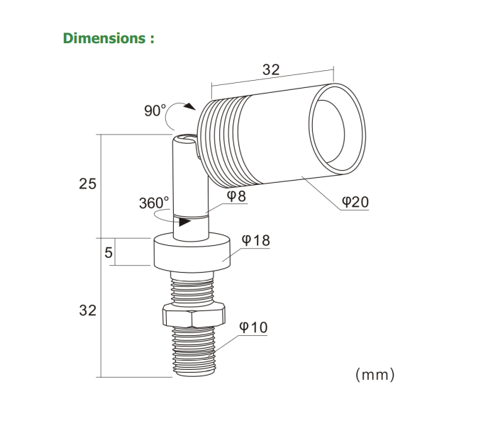 • TINYMNOIR50K = Rond – 2W – 25° – 190lm – 5000°K