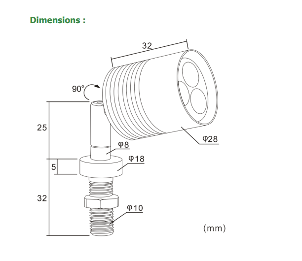 • TINYTNOIR40K = Rond – 3W – 25° – 345m – 4000°K